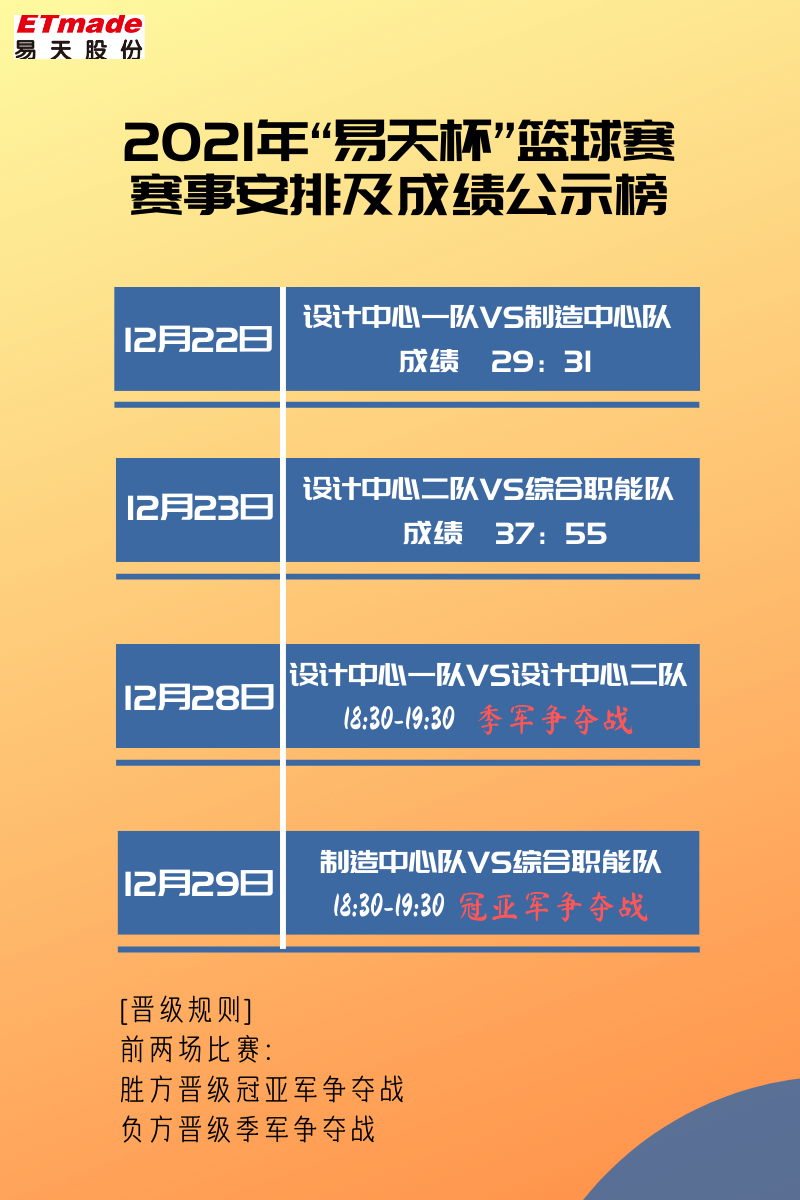 本届篮球赛正式参赛共有四支队,分别是研发设计中心一队、研发设计中心二队、制造中心队、综合职能队。