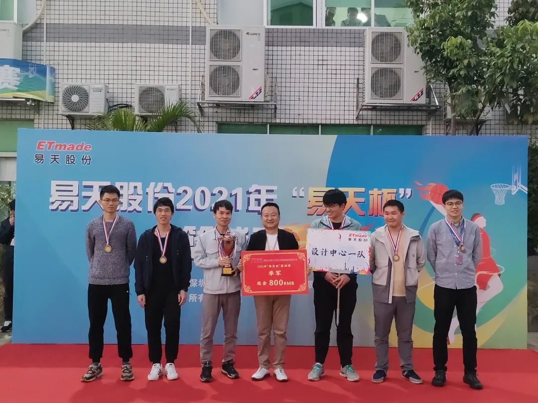 接下来颁发的是本届篮球赛的季军,邀请公司副总经理康宏刚为设计中心一队颁奖,奖品为季军铜牌、奖杯、现金800RMB。